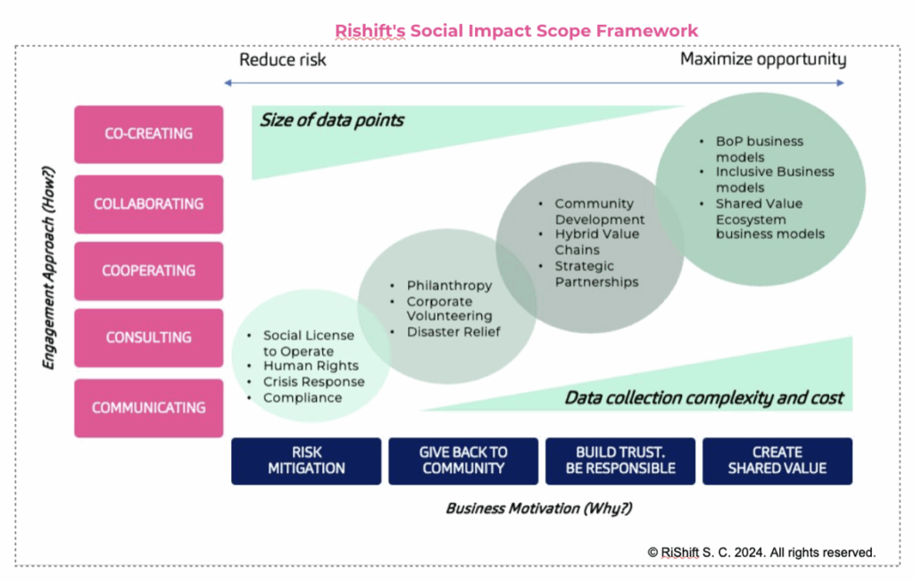 For more than eight decades, executives and scholars have debated whether business has responsibilities beyond profit maximization. Today, that debate is no longer theoretical—investors, regulators, and communities expect companies to articulate and demonstrate their social role. The lesson is clear: companies don’t evolve along a single maturity path. Instead, they operate across a portfolio of approaches—adapting different mindsets depending on geography, sector, or stakeholder pressure. At RiShift, we developed the Social Impact Scope Framework as a practical configuration tool. It helps leaders clarify purpose, align governance and partnerships, and ensure that evidence is robust enough for investor-grade disclosure. The framework makes the trade-offs visible rather than hidden in slogans.